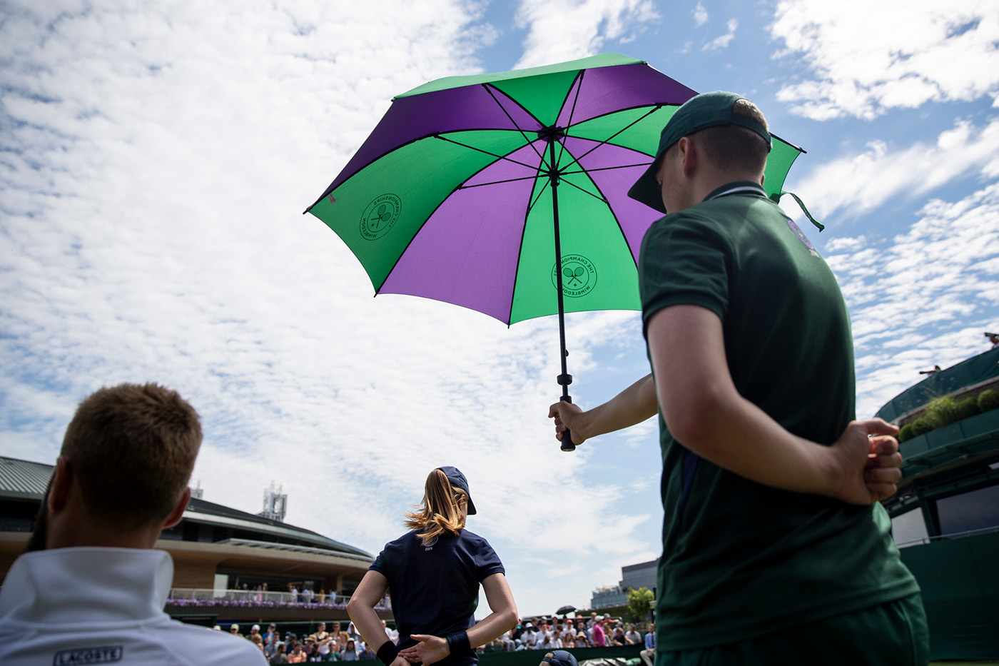 The retractable roof on centre court was installed to keep out the rain and there are no rules in place to allow it be closed to reduce the court temperature despite that being regular practice at the australian open in melbourne where 40 degrees days are not uncommon.